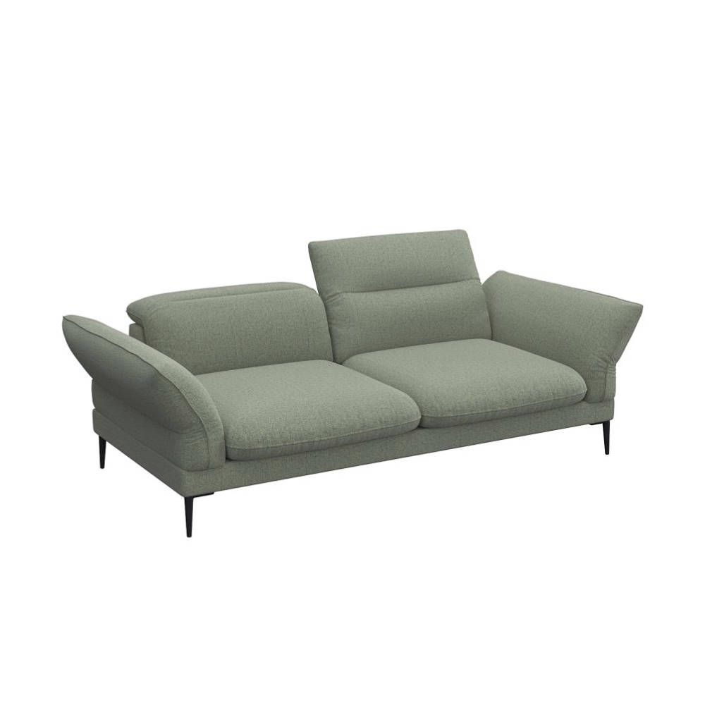 Salino is Italian inspired sophistication! This sofa offers manually adjustable head rests for each seat for additional neck support. The back and seat cushions are fixed. The arms have soft rounded shapes that contribute to the elegance of this sofa. The sofa is available with beautiful organic shaped black metal legs that fit the sofa perfectly.