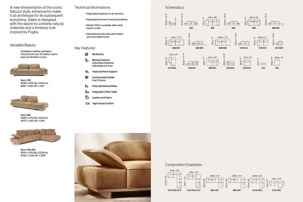 To create the Adam sofa, Marcel Wanders studio has made a significant journey in the brand's history and style. The result is a sofa with a modern casual style which makes visual and sensory comfort its distinguishing feature. Adam is a reinterpretation of the Natuzzi style, as well as the archetype for future sofas, furniture that gets to live a "second life" because it is capable of lasting over time. *Available to order in various leather and fabric options.
