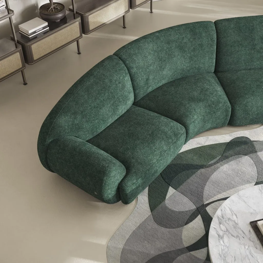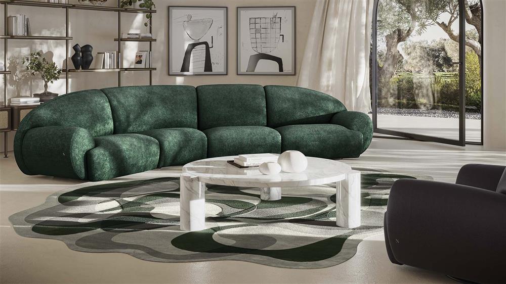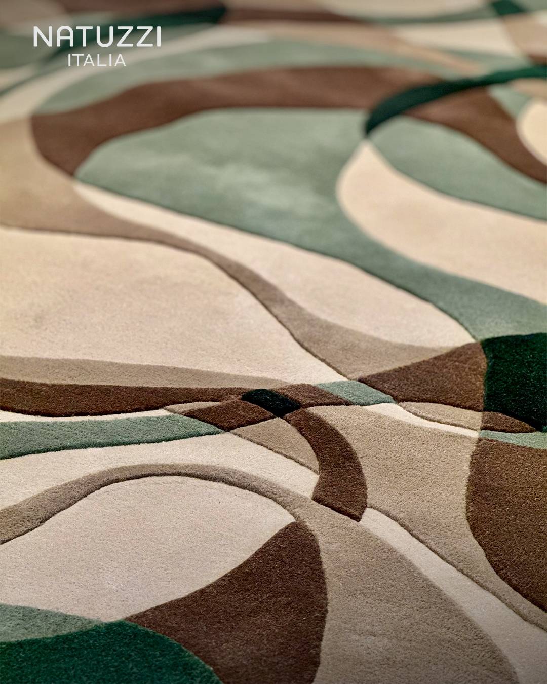 Designed by Karim Rashid. This hand-tufted wool rug showcases an organic shape adorned with sketch-like designs, reminiscent of fluid brushstrokes. The artisanal craftsmanship is evident in every tuft, lending a luxurious feel to the rug while infusing the space with a sense of contemporary elegance.