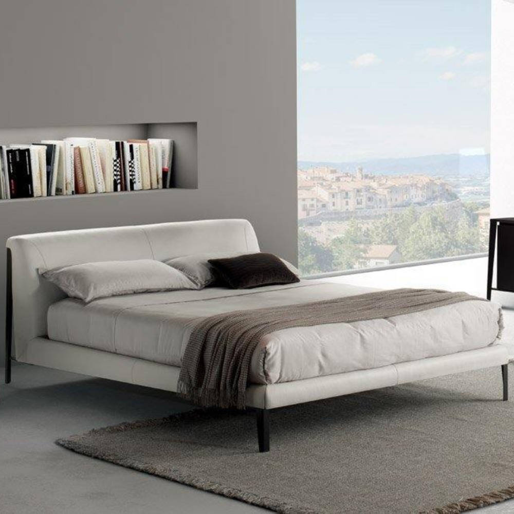 An upholstered bed, set within its frame like a precious stone. Designed by architects Manzoni and Tapinassi and manufactured by NATUZZI ITALIA, DIAMANTE is a clean-lined, modern bed. Its distinctive features are the details: the stitching on the leather upholstery, a comfortable curved headboard, the original line of the frame that defines the bed's profile and supports it lightly. The most basic dreams are sometimes the best. Both sizes come with slats.