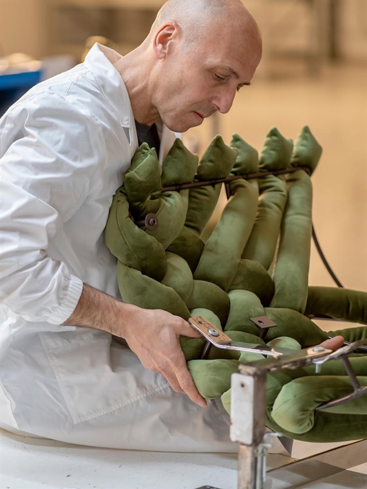 Inspired by the traditional “crocchie” - the intricate braids worn by the women of Matera’s ancient Sassi - Giuggiola transforms cultural heritage into a contemporary design icon. Its sculptural silhouette features an elegant tail-like base, reminiscent of the flowing train of an evening gown, adding a sense of grace and movement to any interior. The swivel function enhances versatility and comfort, making it a perfect statement piece for both living and lounge spaces. Also available in fixed and storage seat versions, Giuggiola embodies Italian artistry, timeless style, and the spirit of empowerment that inspired its creation.