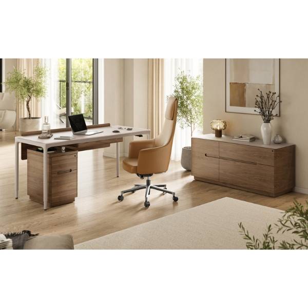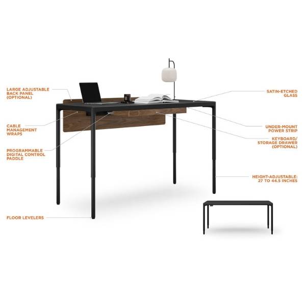 The LUMA 6762 Sit+Stand Lift Desk blends refined design with ergonomic performance, offering a seamless balance of style and functionality. Its satin-etched glass surface resists fingerprints and provides a smooth, durable workspace, while the height-adjustable four-leg base ensures personalized comfort throughout the day. Equipped with a programmable control paddle, the desk allows smooth transitions between sitting and standing, helping to support productivity and well-being. A generous 66” x 28” desktop surface, softly beveled edges, and precision engineering create a workstation that feels as good as it looks. Part of the Luma Office Collection, the Sit+Stand Desk can be customized with an optional modesty panel and keyboard/storage drawer, while integrated wire management wraps and an included power strip keep your workspace organized and clutter-free. Also available in a stationary version or a compact 48” x 24” size, the Luma Desk series adapts beautifully to both home and executive office settings. Key Features: satin-etched glass surface with modern appeal, height-adjustable four-leg base, programmable control paddle for sit+stand transitions, 66" x 28" desktop surface, softly beveled edges for ergonomic comfort, integrated wire management wraps and included power strip, optional modesty panel and keyboard/storage drawer