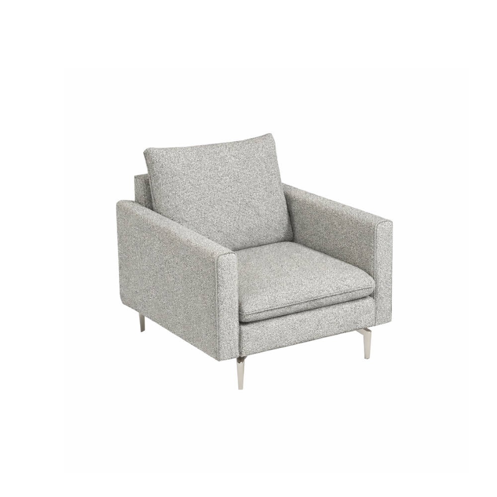 The Premura Leather Chair by Natuzzi is a sleek new transitional design, marked by narrow track arms, long pillows and stylish metal legs. The Premura is a fully customizable model, available in a wide variety of upholsteries.