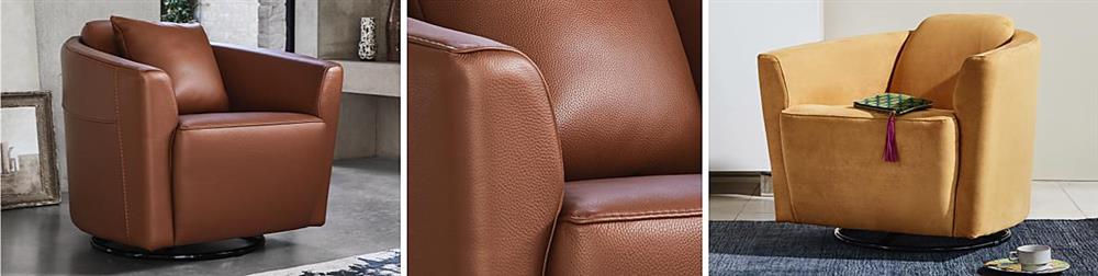 The KETTY swivel chair by Nicoletti Home is a striking expression of modern Italian design - where simplicity meets sophistication. Its sleek, flowing lines and curved wraparound arms pay homage to the timeless “tub” silhouette, creating a chair that’s both contemporary and inviting. Crafted with Nicoletti’s signature comfort innovation, KETTY offers a spacious seat and supportive backrest, perfect for moments of relaxation or stylish conversation. The smooth swivel base adds flexibility and ease, making it ideal for any modern living space. Available in 100% premium leather that’s luxuriously soft yet durable, or in a selection of super-soft fabrics to suit any décor and lifestyle. Part of the KETTY collection, this chair embodies handmade Italian craftsmanship, modern comfort, and enduring style - a true centerpiece for today’s refined interiors.